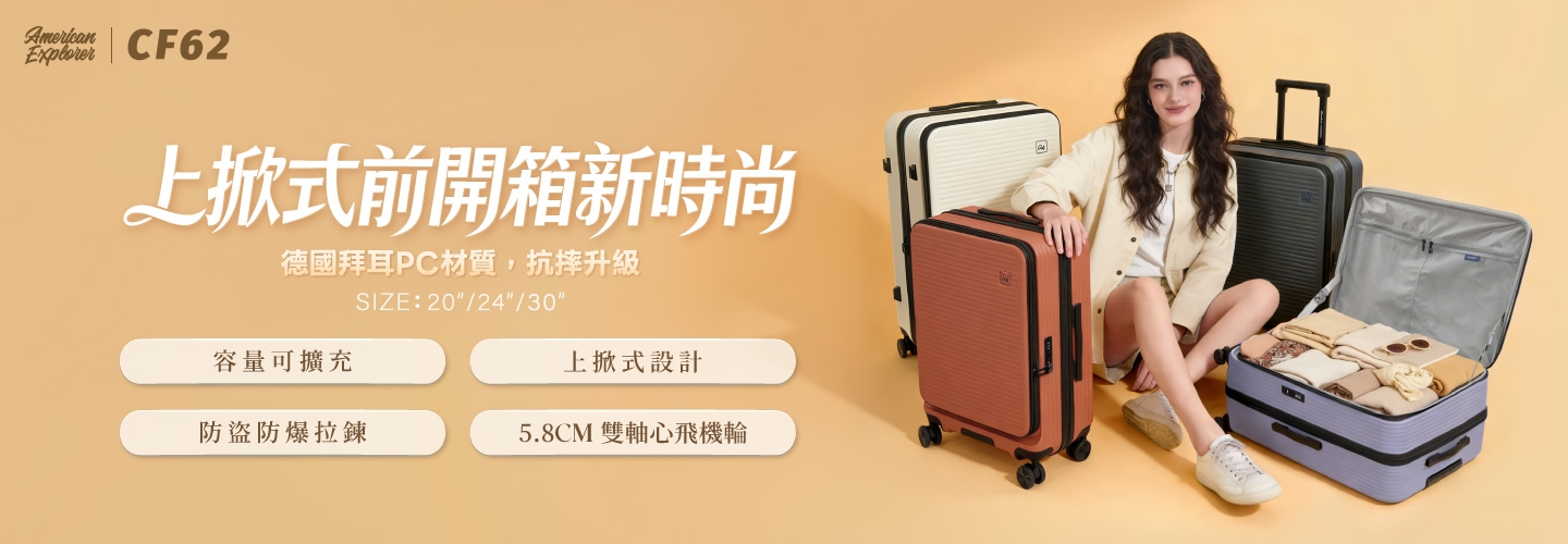 美國探險家 30吋 前開式 行李箱 CF62 上掀 平板收納層 可加大 雙排靜音輪 大容量 輕型 防爆拉鍊 霧面 防刮 TSA鎖 旅行箱