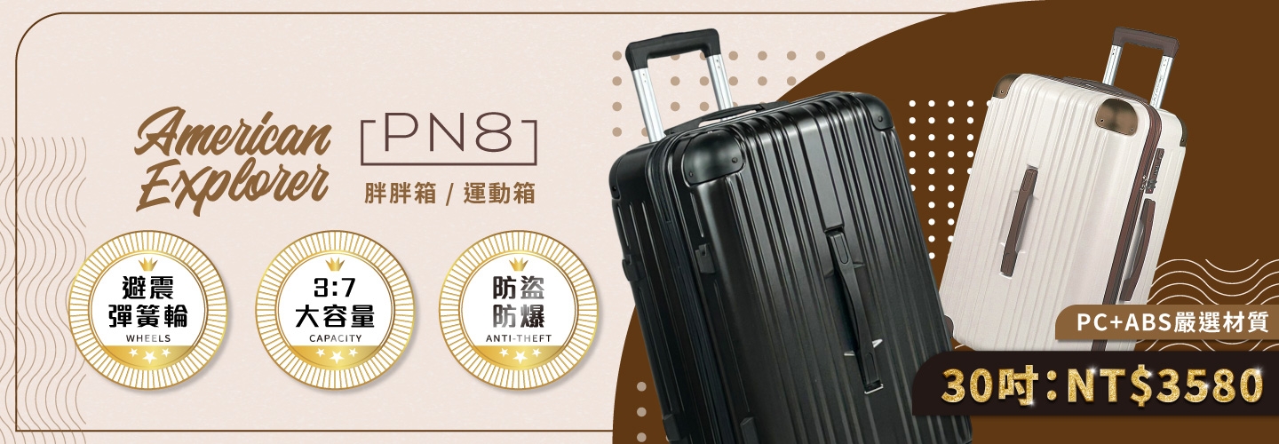 26吋+30吋 PN8 行李箱 胖胖箱/運動箱 American Explorer 美國探險家 大容量 終身保修 防爆拉鏈 旅行箱 避震雙排輪 輕量 霧面 拉桿箱