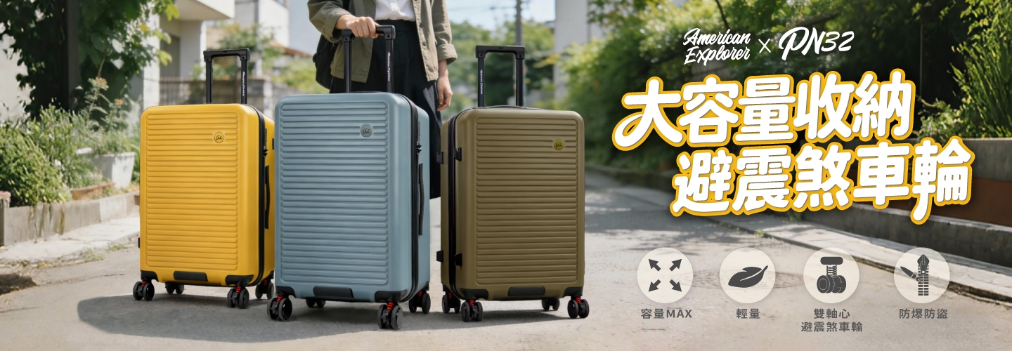 26吋 PN32 胖胖箱/運動箱 行李箱 TSA海關鎖 防盜拉鏈 大容量 American Explorer 美國探險家 避震煞車彈簧輪設計 輕量 霧面防刮 旅行箱