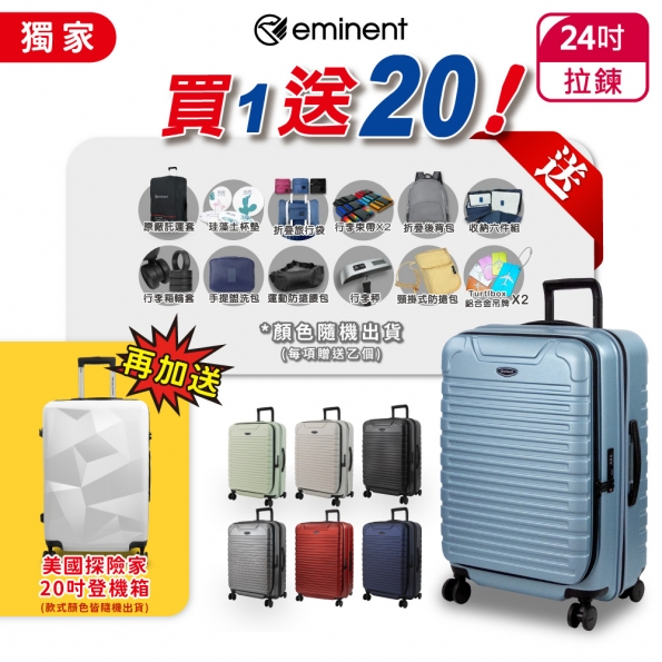 eminent 萬國通路 前開式 上掀式 24吋 KK60 雙層防盜拉鍊/防爆拉...NT$ 7,650加入購物車eminent 萬國通路 前開式 上掀式 24吋 KK60 雙層防盜拉鍊/防爆拉鏈 德國拜耳PC 可加大 TSA鎖 雙排靜音大輪 前開行李箱 旅行箱