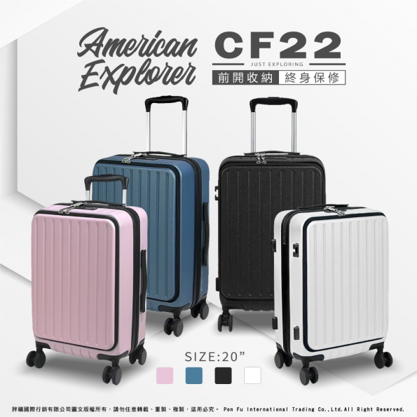 【American Explorer 美國探險家】行李箱 CF22 輕量 前開收納 筆電箱 登機箱 拉桿箱 旅行箱 大容量 雙排靜音輪 霧面 防刮